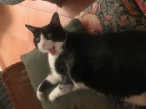 But what was I to do with him? If I put him out in the garden, he would just come in again. Too bad I couldn’t just drop him over the patio fence atop the town wall into an olive grove far below the way I did with captured Italian field mice the first time I housesat for my cousin Marcia in Montisi…
