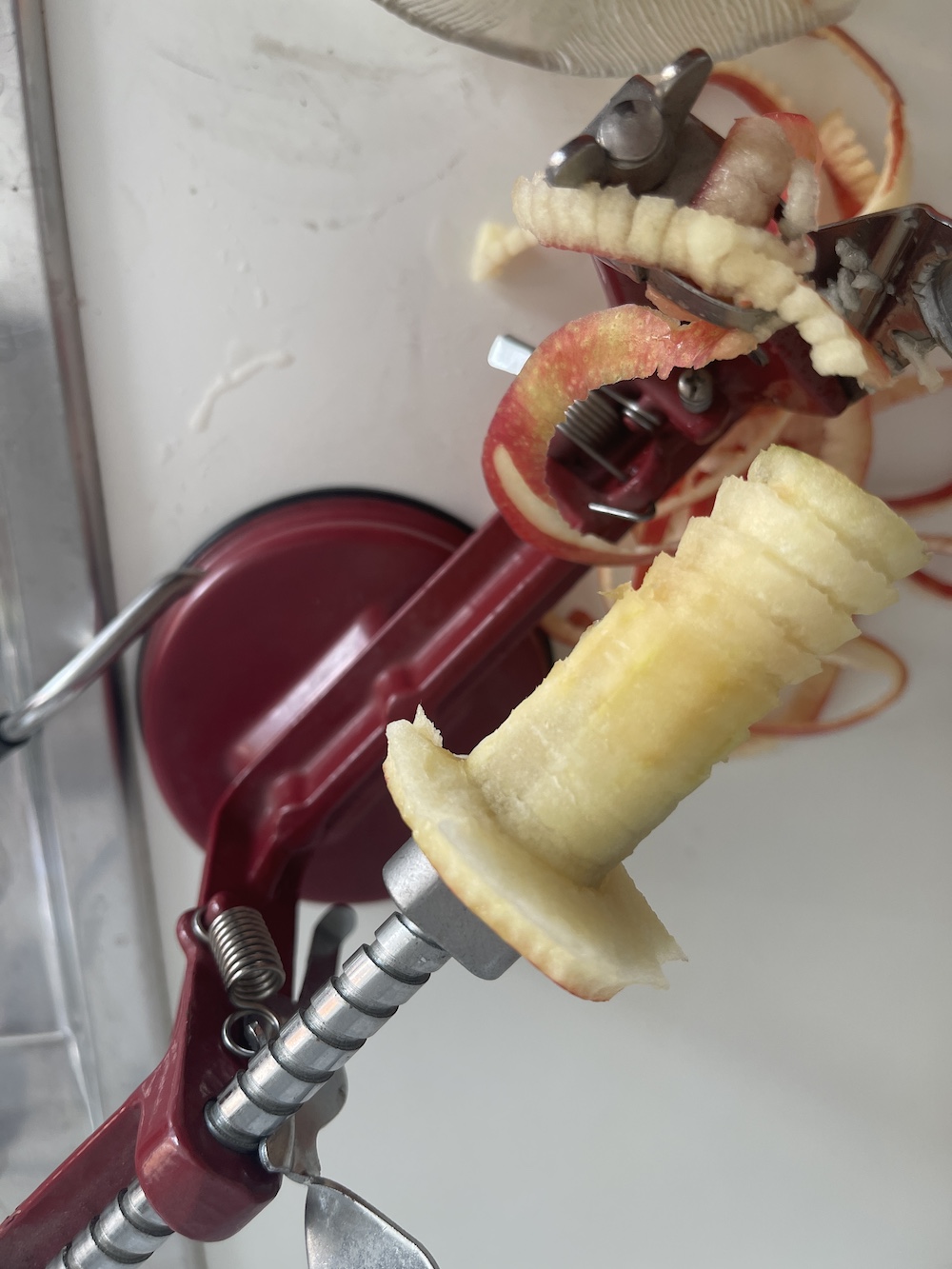 That apple-paring device would do Rube Goldberg proud ! What fun ! My Mom had a tomato juicer that did similar amazing things !