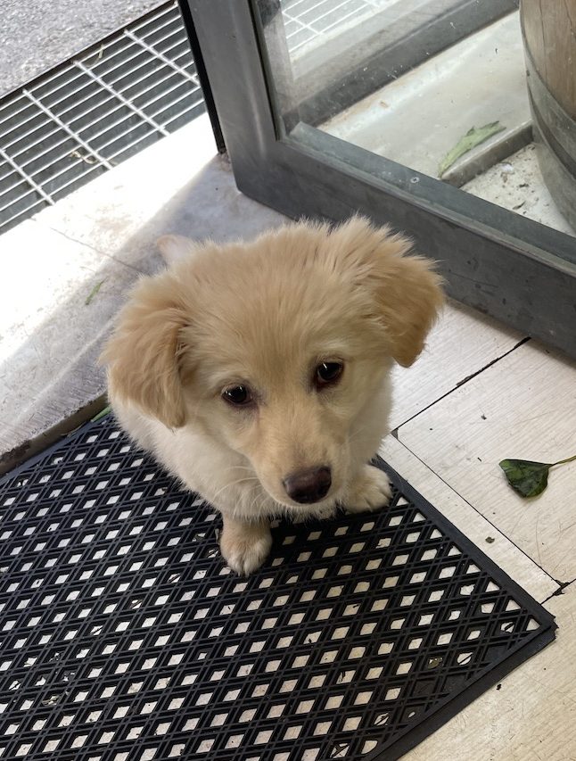 Bella, a little darling adopted puppy near where mama and papa are staying. Mama says that normally she is running and jumping like a crazed weasel! She’s just resting…