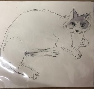 Well, mama HAS done, er, quite a few other drawings of me, not on the IPad but with pen and ink, which she prefers, let me tell you! This stylus drawing stuff is far more difficult to control. Maybe if she had started long ago, since the young anthros today seem to be able to make art happen on an IPad in seconds!