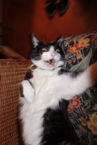 SOME kitties like to throw their kibbles in their water dishes too.