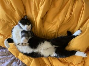 I forgot: Always try to put your paws up for perfect circulation. No spider veins for us kitties. Wait a minute…do spiders have veins?