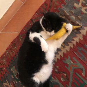 Well, it’s not as if these two I live with are constant entertainment, okay, maybe some of the time they manage to get a smile out of me, but when I am  left to my own devices, I go straight for that banana you see touching my forehead with affection and have  a little boogie time.