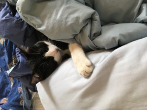 Does that happen to you? That sound of a voice, reading, or talking softly, telling you what a good kitty you are, and how so many lives are enhanced by your very presence, or simply that you were a good, good kitty and ate all your dinner or brought your mama’s attention to the fact that your toilette might need a little housekeeping, is really all it takes to make life really worth living and sleeping really worth sleeping, haha.