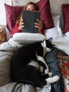 Mama is reading a book to me, actually, not a book but reading from her Kindle app, and I’m just lying here absorbing all these sentences and paragraphs and chapters, whatever they are, that anthros get so turned on about, and I’m TRYING to understand just what a subject and verb and object and indirect object is but what’s really happening is that the sound of her voice, murmuring to me about Stalin’s daughter (The Red Daughter by John Burnham Schwartz) or the wonderful archeological mysteries of Elly Griffiths or Martin Walker’s stories of France’s Perigord region, is really what puts me out like a light, haha.