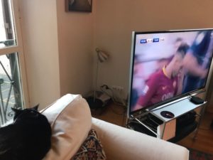 BUT little does she know that I am a light sleeper and I meowed when WE JUST SCORED!!! Bravo, Schick, a Czech like mama! YAY, he needed that goal because maybe you don’t know this but these players are bought and sold for millions and I think the Roma team paid a few million for him and he has not been performing too well, but today, magnifico!