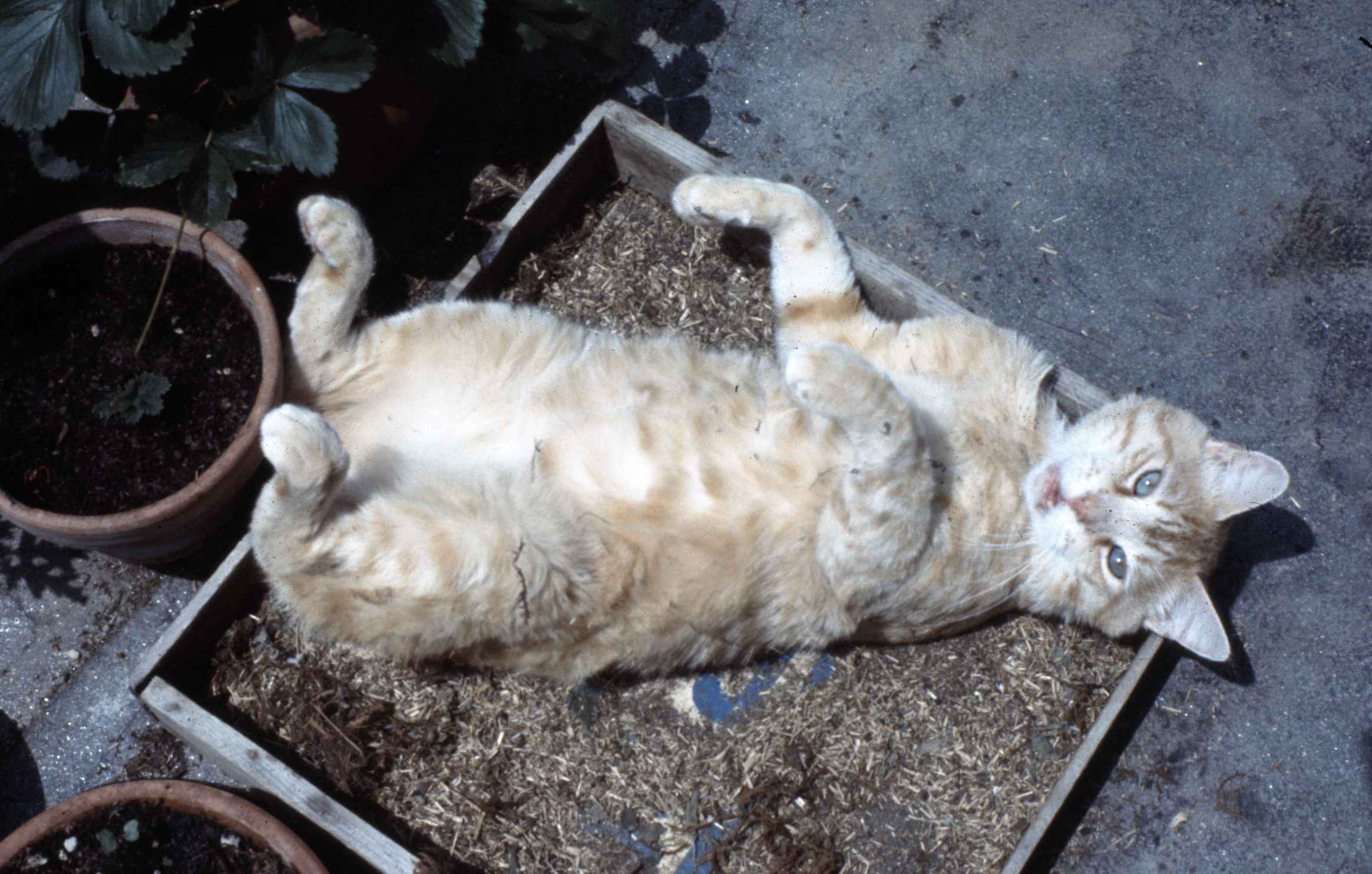 And this poor guy only has a planter box! (I have to admit, that’s mama’s cat from long ago, Fiat, who looks like a nice guy, but he’s in MY post. I did it to be nice…