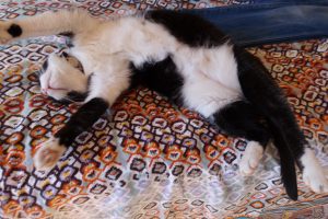 SO…saving mama the trouble of vacuuming the couches and bed covers and chairs and guests and so on, I am proud to be the first kitty who simply willed herself with mindfulness and meditation not to shed.