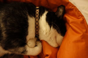 We are the most spoiled kitties on earth, haha. But I have gone and lost my COLLAR, and I don’t go anywhere! Mama is out in the garden on a search….
