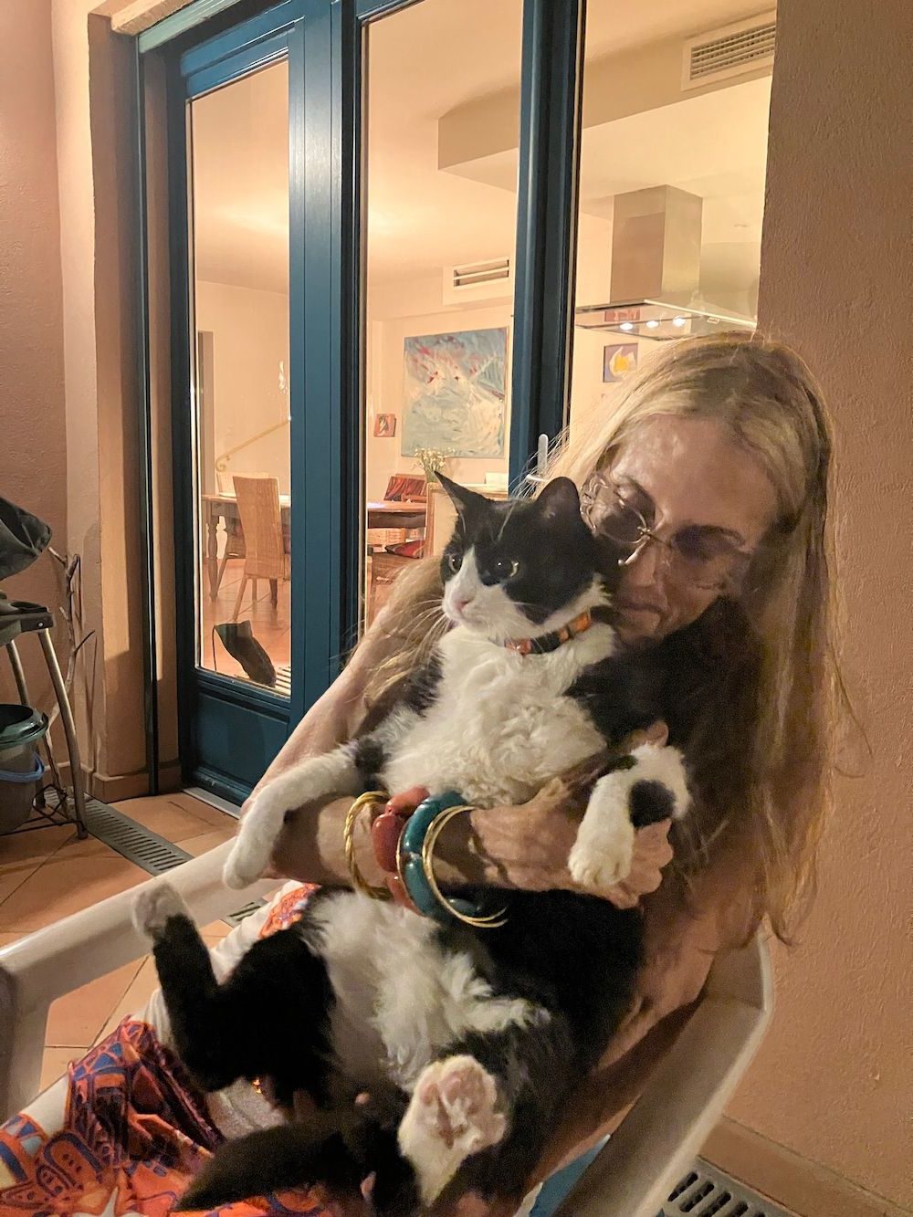 Mais oui! Being squished is one of the magic moments in life around here. And I squish mama back when I lie against her leg.