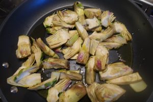 Well, mama goes bananas when she has spring artichokes, haha. They are in season now and we are eating frittatas and omelets and little thin-sliced baby artichokes sautéd in olive oil and I was watching the other day when mama even threw a few pieces into a fish soup!