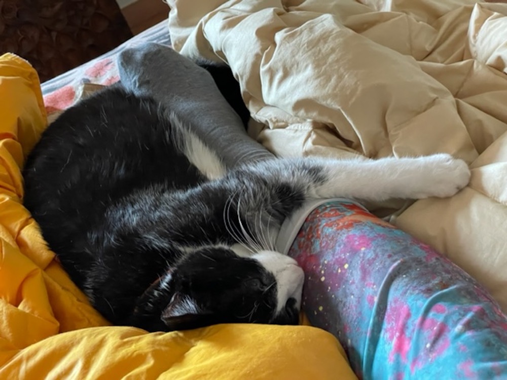 Loulou you certainly look relaxed with your Mama’s leg as your