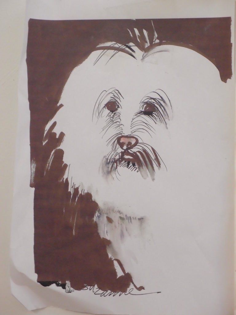 And we posted a sketch of a doggy today instead of a kitty. This was our neighbor’s doggy, Hugo who came to tea long ago with his mama, disappeared in the house, and peed under mama and papa’s bed. But we loved him anyway…he is long gone, alas, peeing in heaven (or maybe that other place…just kidding.)