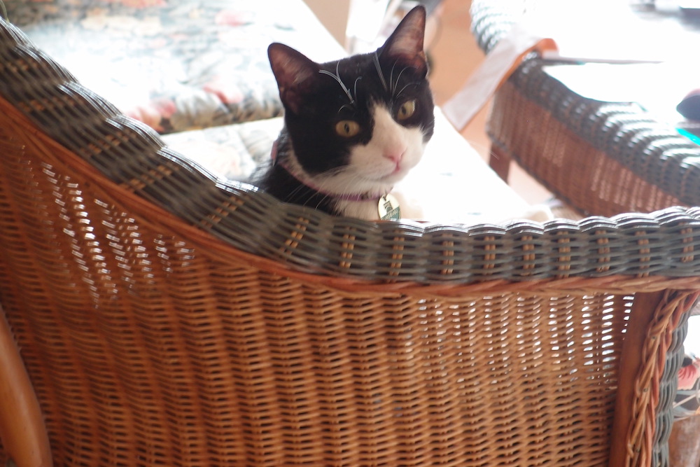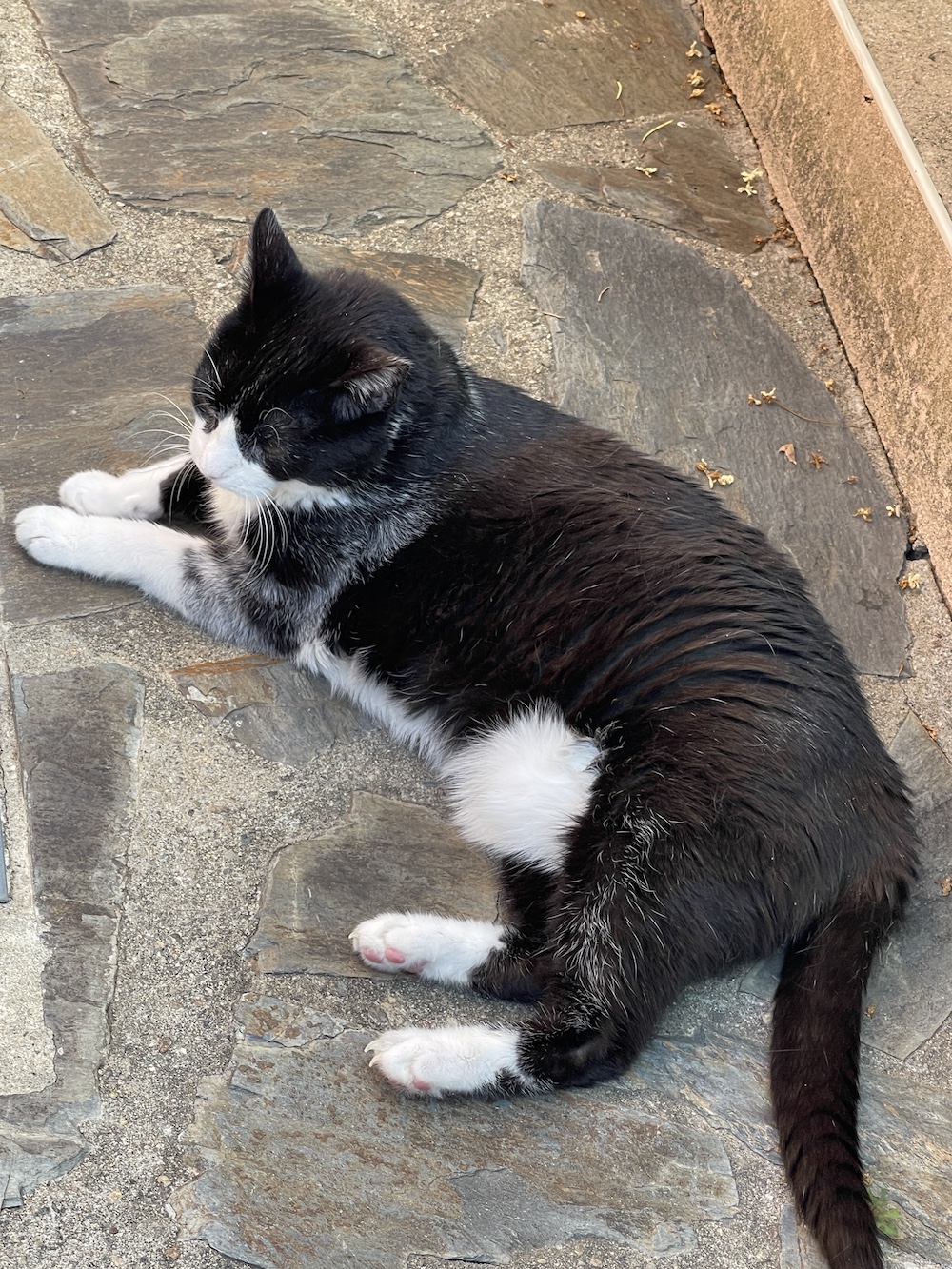Keeping an eye on all the garden birdies while THEY were on the way home…somebody has to do it. Those birdies think this is their exclusive restaurant!