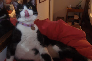 What are you doing in this photo, Loulou…licking food off of your nose?