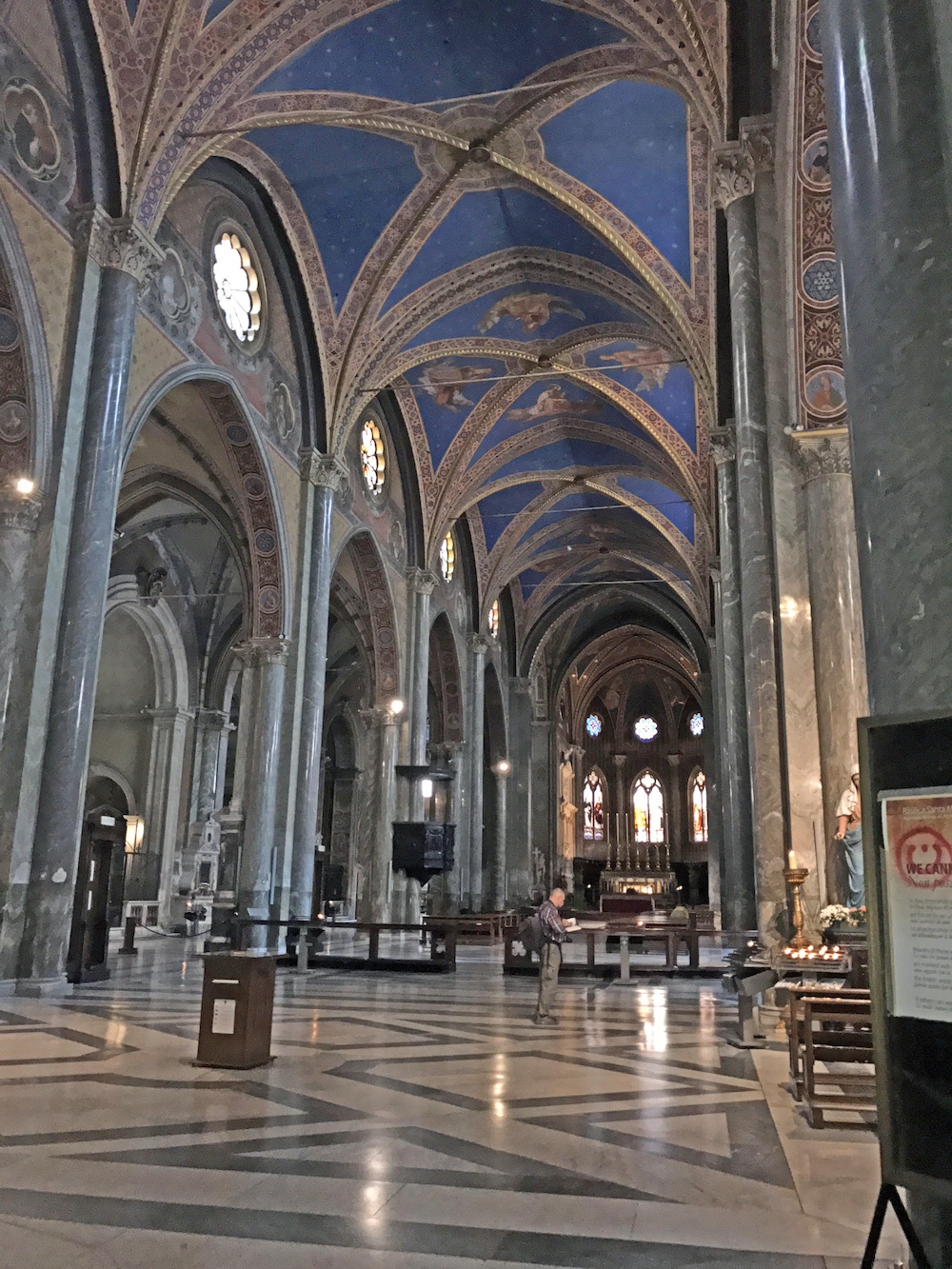 Here are pics of the campo dei fiori ,and also one of the lovely interior of Santa Maria sopra Minerva, the Gothic church that sits upon an ancient temple dedicated to Isis, as yet not dug up because, well, the church sits on top of it, haha.