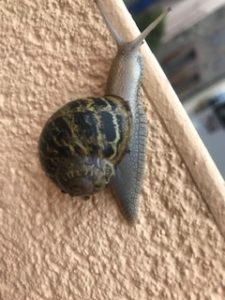Oh, boy, was mama surprised today when she went out in the rain and found a very wild party of escargots hanging out on our wall! They had climbed up there overnight and who knows why, other than that it was drier and easy to cling to, haha. For some reason, our snails LOVE that wall.