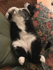 I am sure that in a few minutes mama is going to rattle the kibble jar and invite me to dinner, but do I care?  It’s just too hot to EAT.