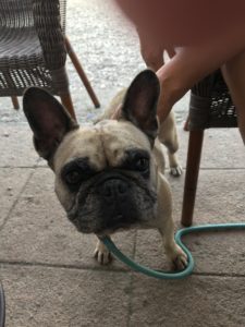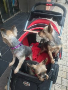In typical doggy fashion, they are practically falling out of their poussette to see if their mama is coming out of our supermarket with FOOD and treats for them. So, so typical.