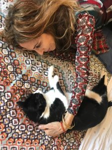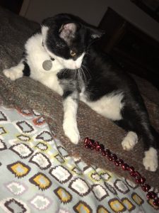 Well, for some reason, mama likes to lie down next to me when I AM ABOUT TO TAKE A SNOOZE, and what’s a kitty to do but indulge her obsession with thinking she is a kitty herself (!), and wants me to play with her anytime she likes.