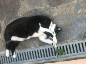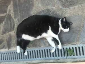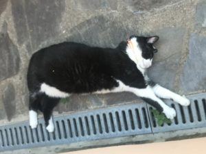Well, you may think I’m nuts, but I LOVE this particular place next to the run-off channels cut into our schiste walkway, because when it’s hot out, the cool air from the channel wafts, whatever that is, up and soothes my little muzzle.