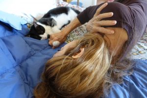 Good thinking–puppy pads and Cat Attract, if I can find it. But I think it’s time for a litter box after 10 years of using the john (a small bowl with flushable litter in it).