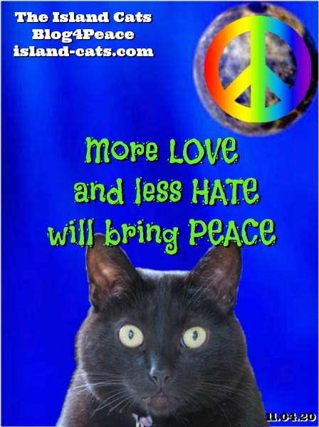 ABSOLUTELY – More love and less hate!!!! And Mamma just found the newsletters among the articles about Biden and Trump. Loulou – you know who I’m pushing for – Mamma told me that one doesn’t like animals. It’s close and Mamma’s getting nervous – Fingers and toes and paws crossed!!!! And the kitty who lost his eye is doing fine – as of yesterday – have to ask today…….