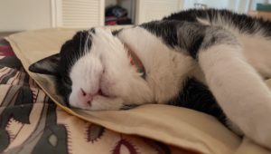 Oh, I do miss them a lot. I think. But I am in the lap of tummy-rubbing luxury right now and don’t want THAT to end. My other kitty sitter, Sue, will be here to step in and she rubs, too.