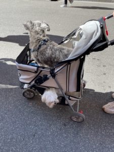 Dogs in strollers are cute…as long as they stay in the stroller!