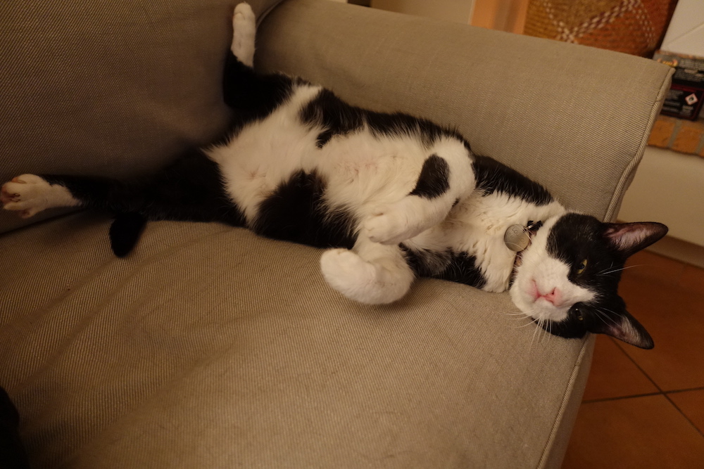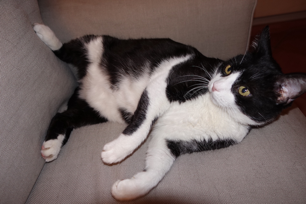 Kitties seem to make themselves comfortable in any position. It’s always good to be flexible.