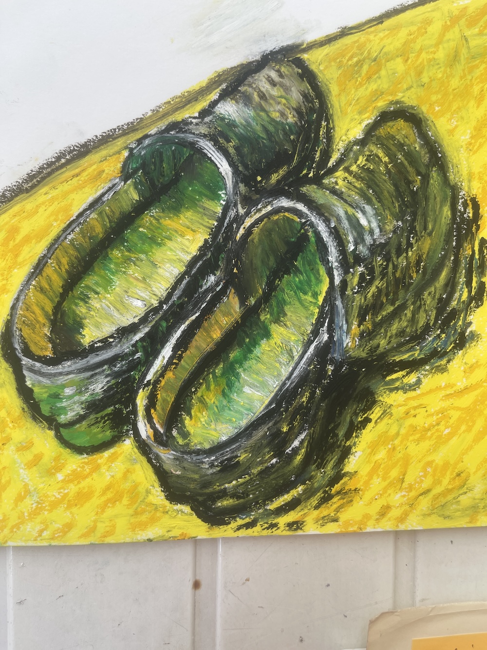Van Gogh’s clogs. Pastel art by Maggie the Magnificent.