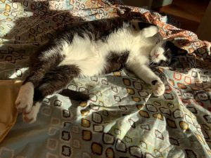 You know how to get those tummy rubs, Loulou. Smart kitty. 🙂