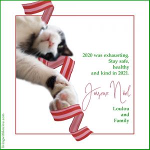 Beautiful card by Miss Ann for you Loulou! You absolutely do have cute toesies – my Mom likes my “pinkies” too!! We hope that the new year brings HEALING and a return to HEALTH for the world. We are now vaccinating our frontline health workers and those in nursing homes…..by late spring or summer everyone here will have a chance to wave farewell to this hideous virus. We are hoping for a VERY VERY HAPPY NEW YEAR!!! Hugs to you dear Loulou…………
