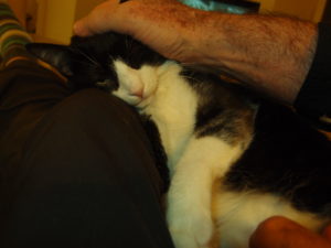 Oh, Patzy, I am better but not eating…mama is still a little worried, but I rubbed on her legs this morning and that’s a BIG change from lying flat out on a bed for two days.
