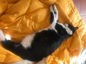 Okay, now, stop looking at my tummy, okay? It always looks like this when I’m spread out…