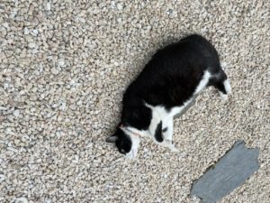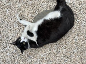 I don’t have itches, I have flea drops between my ears. I just love the gravel…