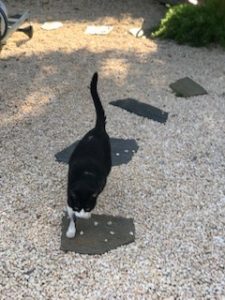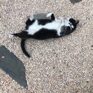 We have these nicely-warmed-up-from-the-sun stepping stones on which I LOVE to wiggle!