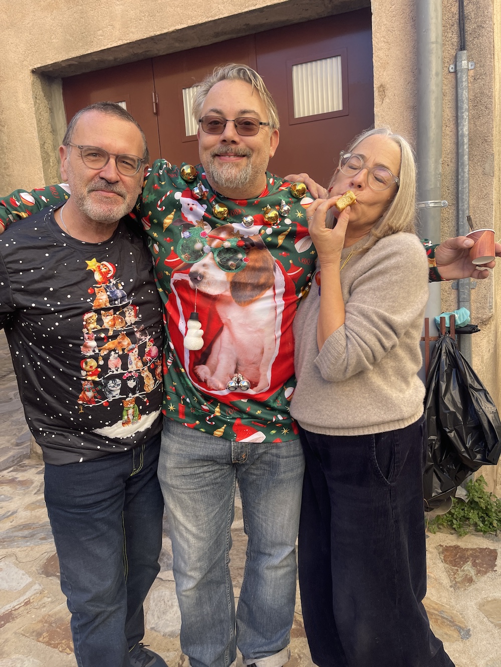 I’d better go watch over the pot…mama’s up the street with our neighbors having an in-the-street party. I took a few pics…it was a Wear Your Worst Christmas Sweater or Tee party, haha. I wish mama had gotten some pics of the funniest ones! Maybe I should take over the iPhone next time….