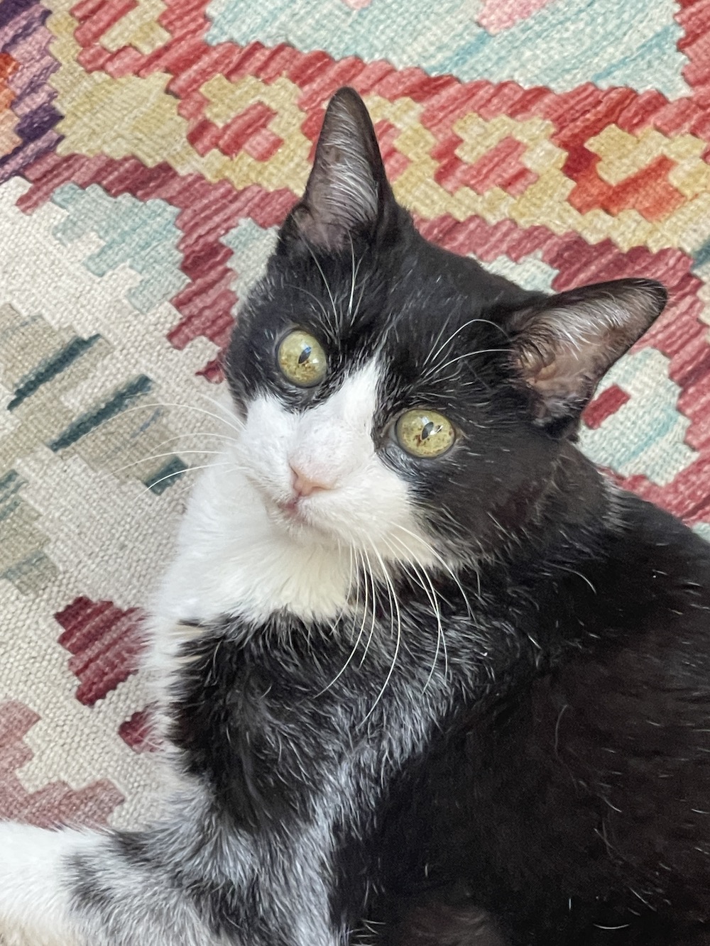 Oh no, no tasty chicken! Still, you have that delightful sun puddle/piddle to enjoy in a rare moment when you’re not working. A most excellent set of selfies, Loulou! Just shows we cats can do more in a second than most human models in a cat walk session, MOL