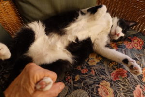 Humans like to sneak up on us when we’re sleeping – usually our “radar” picks up the fact someone is spying on us but sometimes they are just coming by for a tubby rub or foot hug and that’s OK……right?