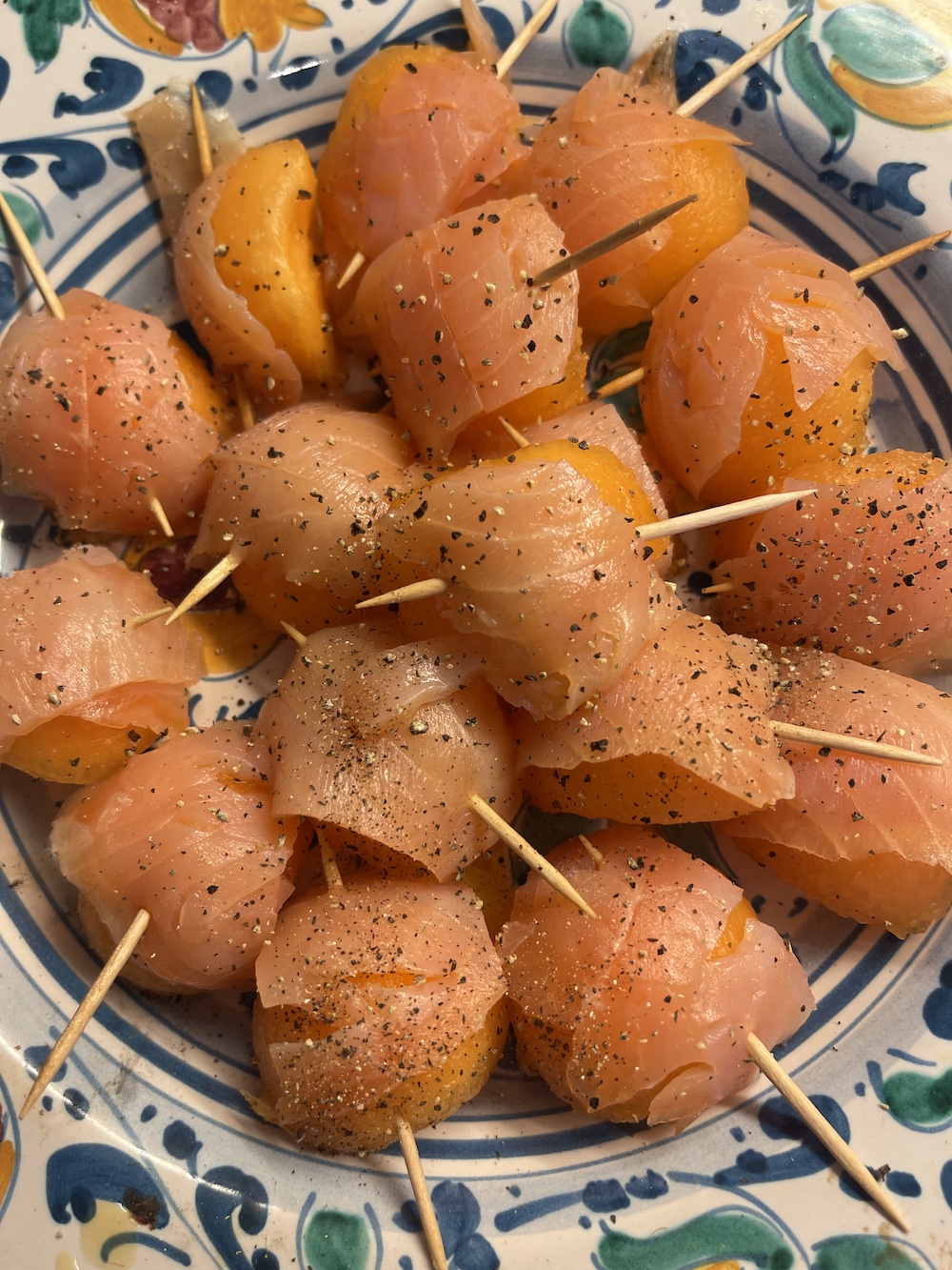 Wrap small pieces of smoked salmon around sweet, ripe melon balls. Secure with a toothpick and serve. A little fresh pepper is a nice touch, too.
