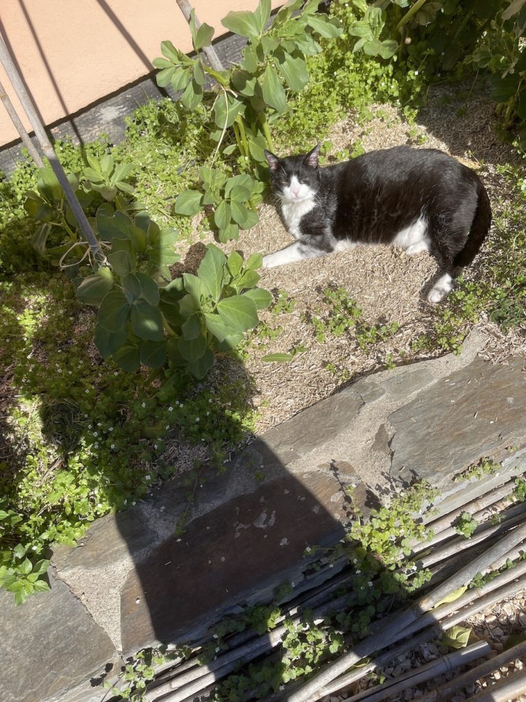 HA that Shadow Woman had better stick to HER part of the garden where those radishes need planting and let me SUNBATHE.