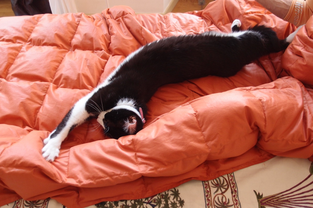 Have you ever noticed that when kitties have a nice long full-out stretch they sometimes yawn and pant a little from the exertion when it’s over?