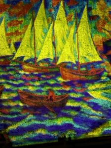 we have another video but here is a photo of a piece of it, which was projected onto our big Fort that dominates the city, Chateau Royale. Mama will upload it tomorrow as it takes time and it is midnight here!