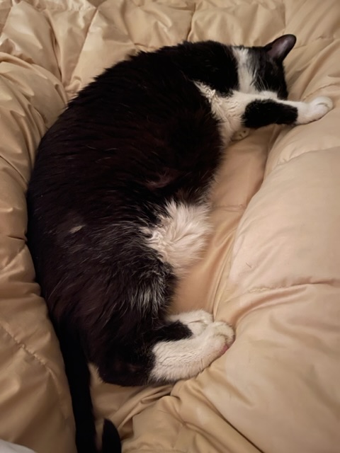 You look quite happy on your rug but even MORE happy snuggled with your Mama’s leg!