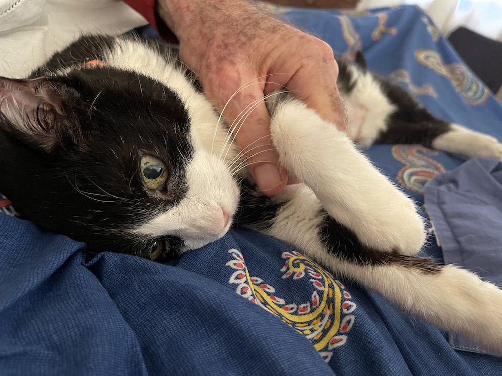And I am thankful for papa holding paws with me when I am on the bed at their nap my snuggle time. Normally, no one holds paws, only hind feet, but papa is special.