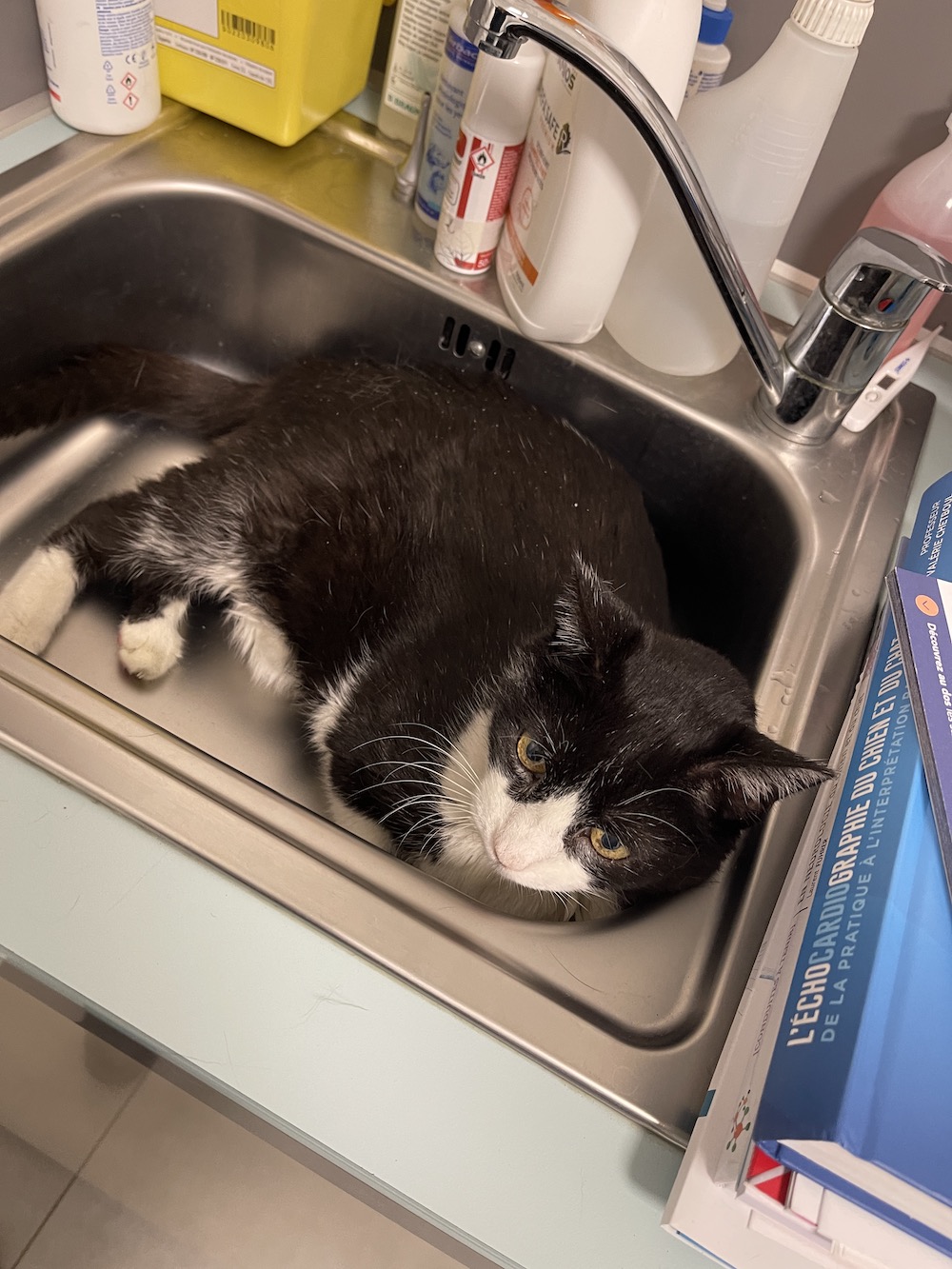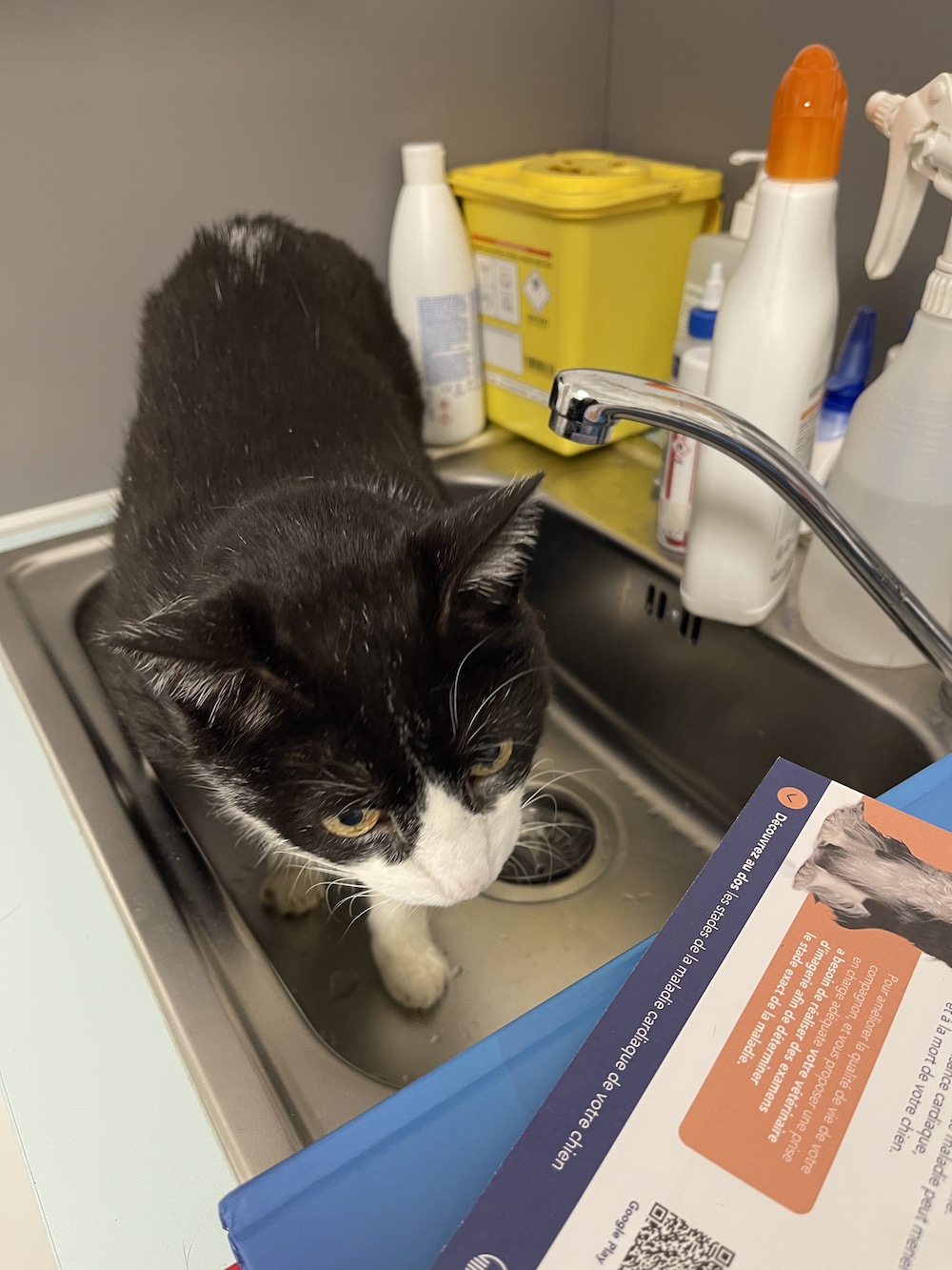 So today I am thankful for sinks in vet’s offices and also thankful that I have no urinary problems – I just pee a lot because of my diabetic condition and so THEY and the doc have upped the ante to 5 units and now I don’t pee as much.