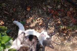 Our outdoor kitties enjoy lolling too – but we have to watch out for ticks !