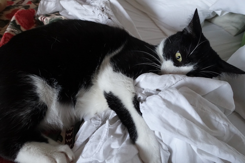 And I’m back to sleeping sprawled on both of them. A hand touching my black fur. Life is good.