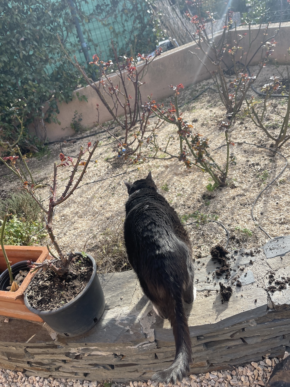 Little leaves appearing is a real sign of Spring. Nice of you to head out to the garden to guard the roses…..!